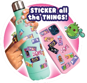 Each Sticki Roll in the Pendant Pack fits perfectly onto the included bracelet- just pull, peel, and stick! Show off your Sticki Rolls style and swap designs with friends! The pack includes an assembled bracelet with a custom character charm tag and is suitable for all ages 5 and up. Each pack includes 120 limited-edition stickers with exclusive designs of Kawaii character's fun lifestyle. Plus, you get a bonus character pendant and collector’s Sticki Book page! The foil stickers are restickable and leave no residue, so they peel off and reapply cleanly to notebooks, water bottles, or anywhere you’d like to bring out your creativity and decorate! Available only for a short time, don’t miss your chance to collect the series characters' most adorable moments in wearable sticker form!
